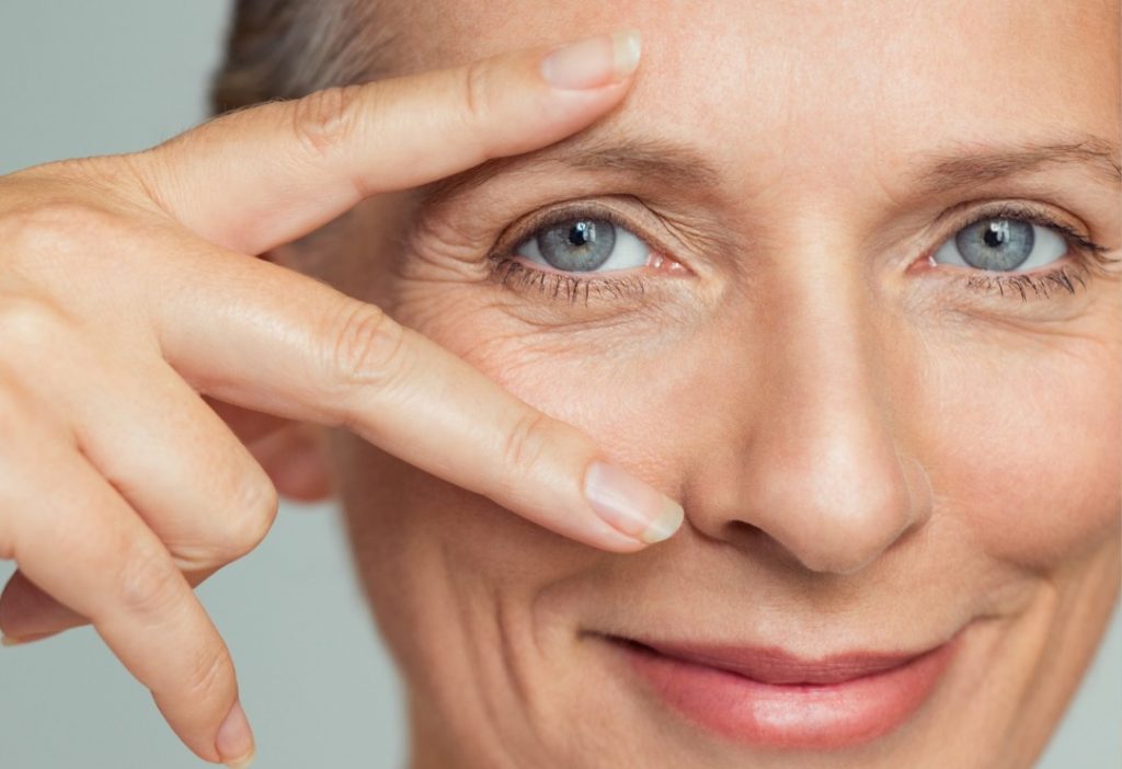 Personas con párpados caídos, bolsas o mirada envejecida, tanto hombres como mujeres, generalmente a partir de los 35-40 años.